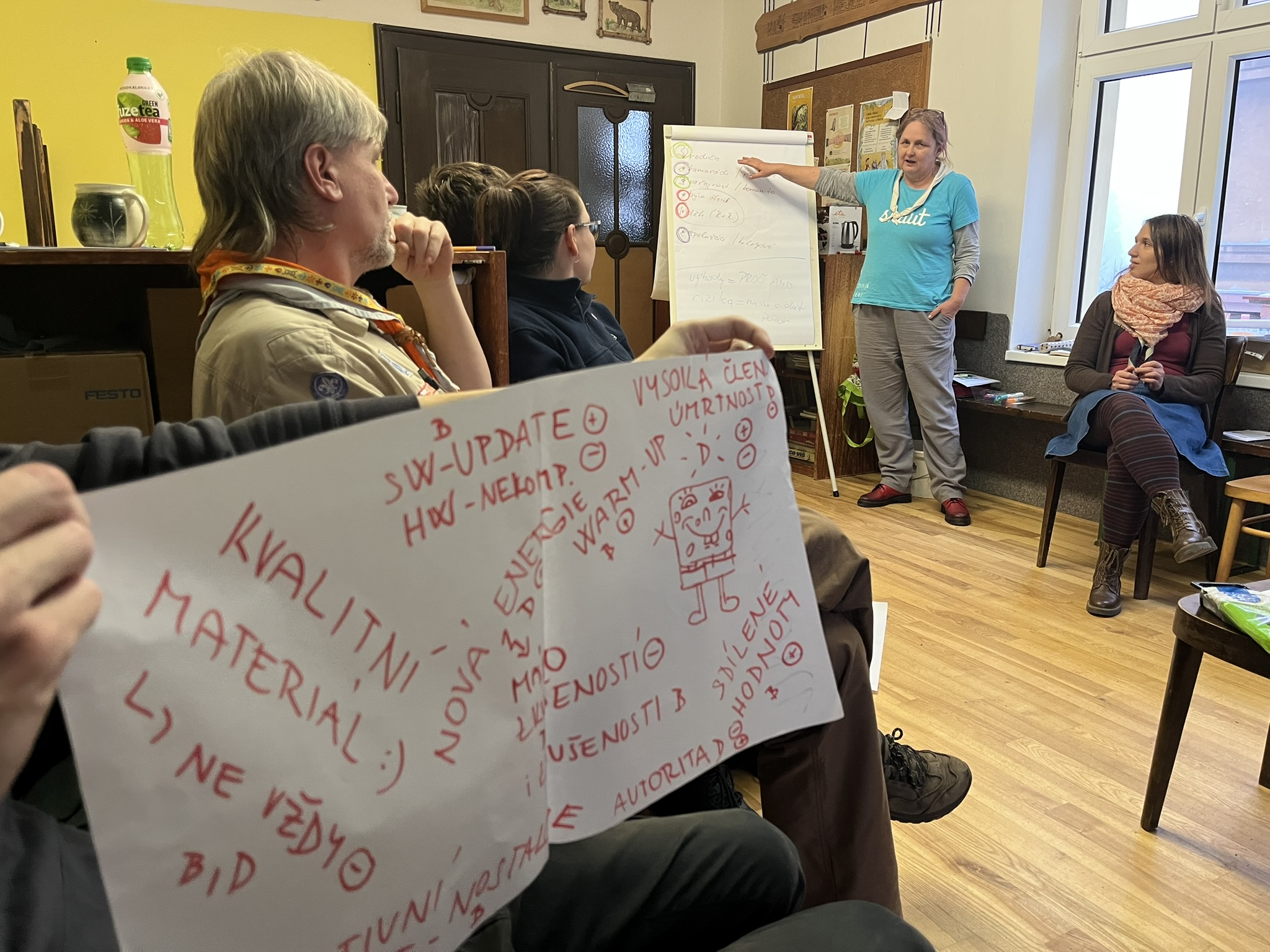 Druhá část semináře se věnovala roverům a rangers. Věkové kategorii, která je pro střediska nesmírně cenná, ale zároveň ji snadno ztratíme, pokud jim nenabídneme dost prostoru. Klíčová otázka zněla: jak skloubit vlastní roverský program s rolemi u oddílu, aby u nás roveři zůstali a postupně přebírali odpovědnost?