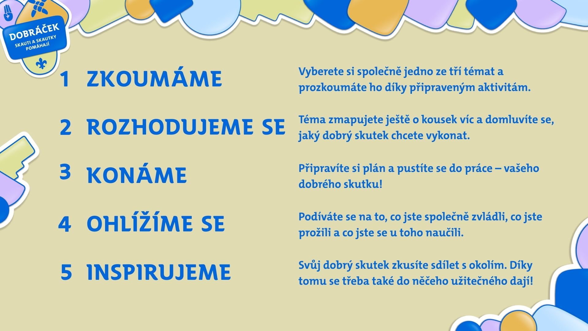 - Zkuste se za akcí ohlédnout (oslavte ji, pojmenujte, co jste zažili, co vás naučila) = Krok 4. Tipy na programy naleznete na Dobráček: ohlížíme se.