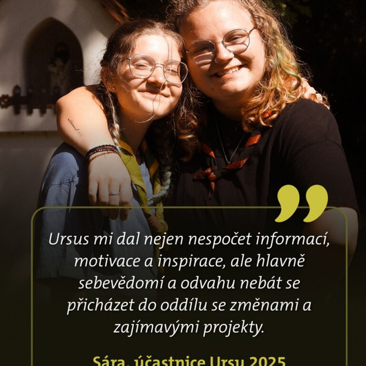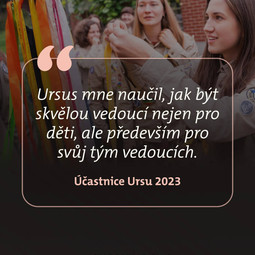 Zapomeň na stres ze zkoušek. Ursus totiž není škola, ale jízda, kterou si tvoříš spolu s ostatními – nemáme závěrečný zkouškový víkend a chceme, aby byl tenhle prostor vyhrazený pro zážitky, pomíjivé okamžiky a službu společnosti. Své dovednosti si budeš ověřovat průběžně díky stezce – Cestě Ursu. Je to přehledný systém kapitol, kde na většinu úkolů – budou nápomocní instruktoři, ostatní účastníci nebo tvoji kamarádi z oddílu. Navíc tě čeká práce na vlastním vůdcovském projektu, který tvůj oddíl posune zase o kus dál. Neboj, budeš mít k sobě instruktora jako svého průvodce.