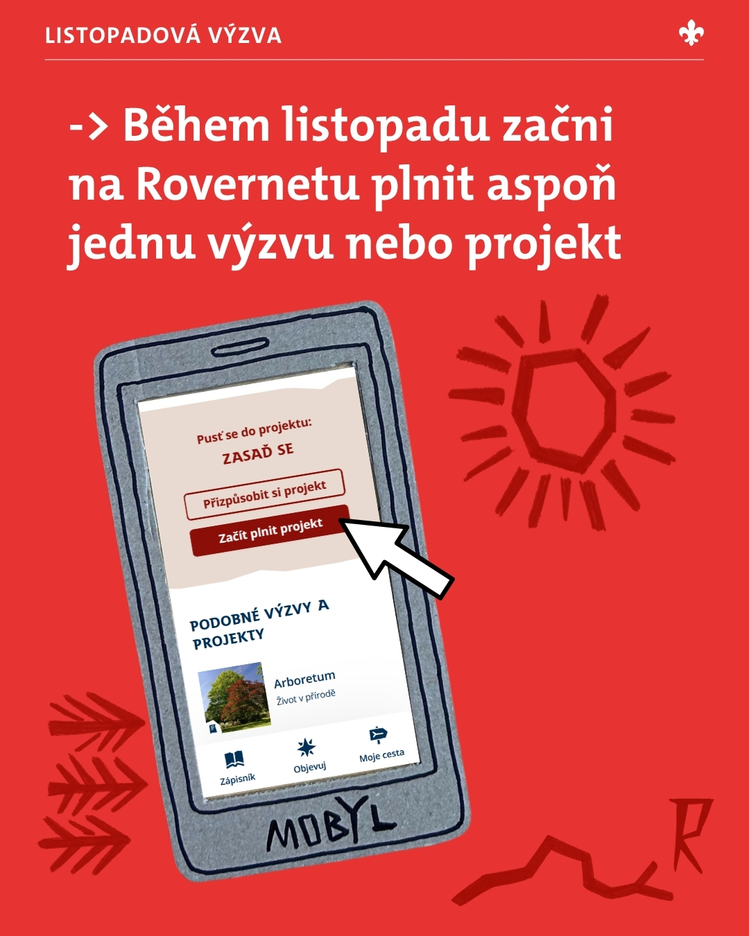 Kdykoliv během listopadu si vyberte projekt nebo výzvu, která vás zajímá, a začněte ji v aplikaci Rovernetu plnit. Nemusíte ji stihnout dokončit, důležitý je první krok! Výherce*výherkyně vylosujeme 1.12. ze všech uživatelů, kteří se v listopadu pustí do plnění.