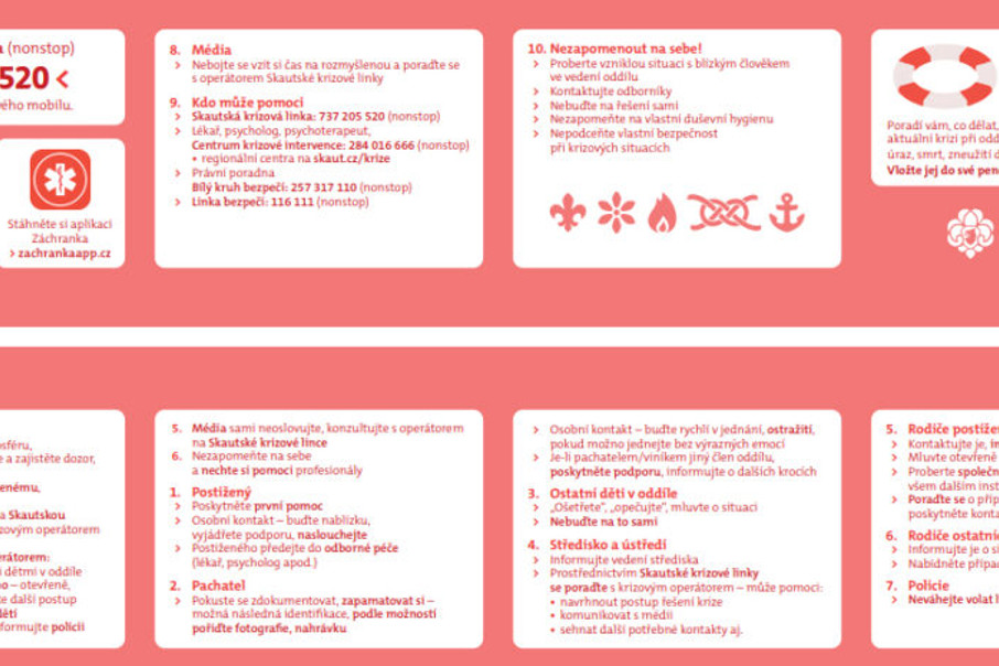 Zprávy z ústředí Připravte se na prázdniny: Skautská krizová linka vás může podpořit ve složitých situacích Pobyt na táborech občas provází také nečekané situace v podobě úrazů či situací, jejichž řešení může být náročné. Pokud byste nevěděli, nebo měli pochyby, jak se v takových situacích zachovat, můžete se obrátit na Skautskou krizovou linku. Je pro vás v provozu 24 hodin denně 7 dní v týdnu.